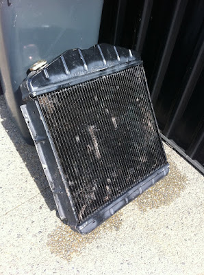 The first part of that was the brake lines and the soft line mounts. Next was the poor old radiator. It was looking very second hand, it needed a good spruce up. I saw my neighbour out water blasting / clean his car so asked if I could use if for a couple of minutes and blasted the radiator down to get is good and clean.